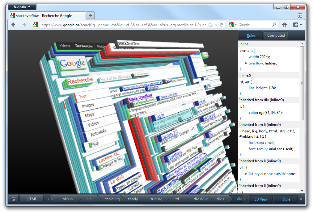 Le support pour OpenGL est encore très immature avec les navigateurs web. Pour le moment, la seule façon de voir de vos propres yeux des animations WebGL est de télécharger les versions dites de développement de ceux-ci (Firefox 4 Beta et les versions développement de Chromium).